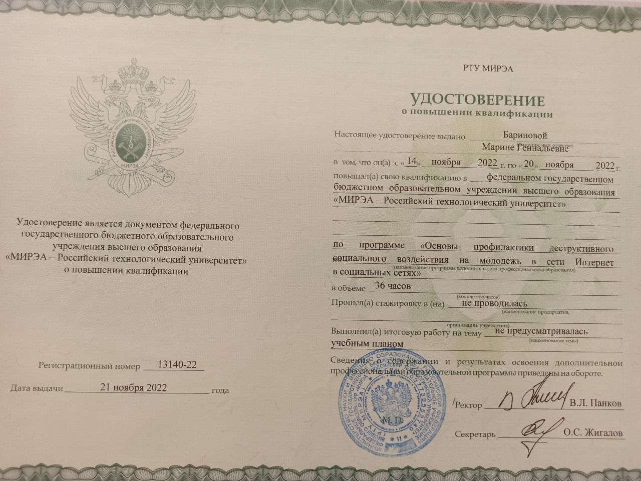 кандидат психологических наук, доцент