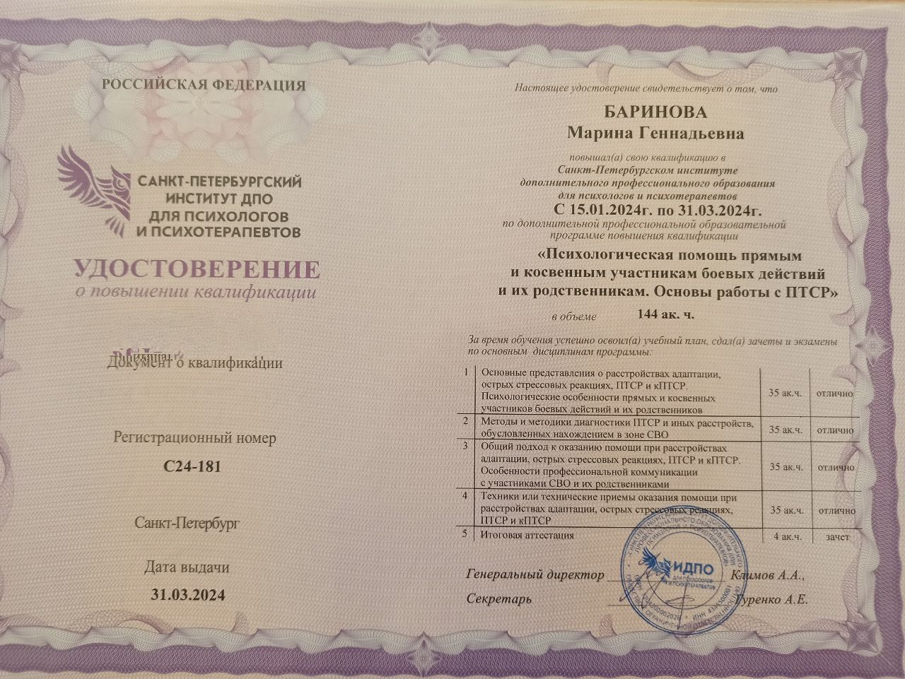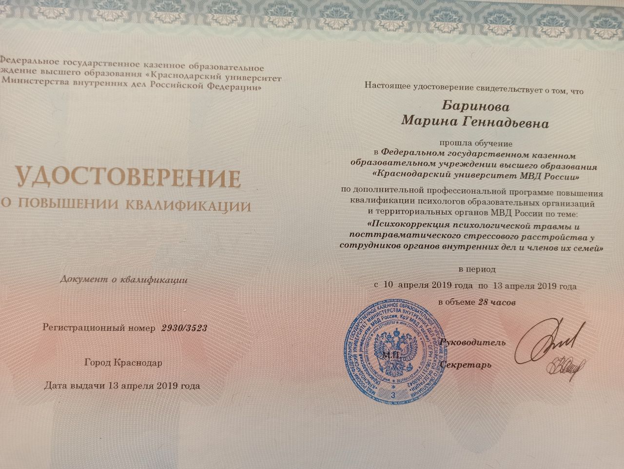 Баринова Марина Геннадьевна